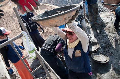 Wir haben keine Vertragspartner. Alle Materialien, die wir verwenden, wie Ziegel, Fenster, Türen, Tische, Stühle oder Betten werden von uns selbst produziert. Sämtliche Installationen und Konstruktionen werden ebenso von unseren ehrenamtlichen Helfern durchgeführt. Amma schreibt deshalb ihren Erfolg einzig ihren Anhängern auf der ganzen Welt zu.